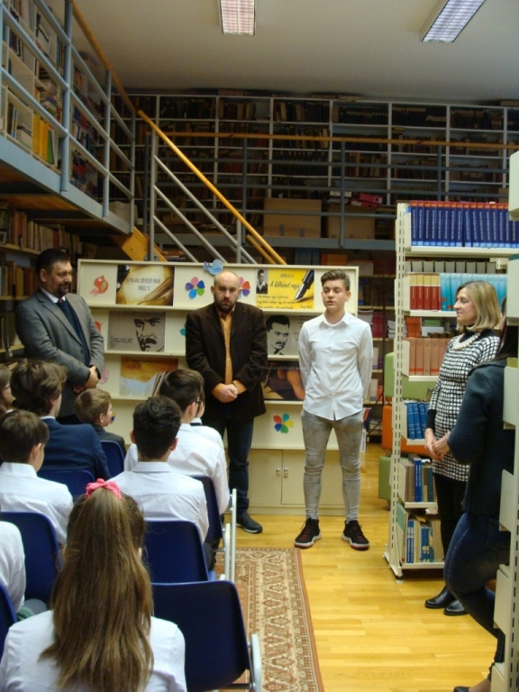 A 2018/2019-es tanévben került első alkalommal megrendezésre Irodalmi tehetségkutató pályázatunk. Versíró kategóriában mérettettek meg az ifjú versírók és költőjelöltek. Hagyományteremtés és hiánypótlás volt a kiemelt célja Boros Katalin tanárnőnek, a pályázat megálmodójának és megvalósítójának. A színvonalas díjátadó rendezvény április 11-én, József Attila születésnapján valósult meg, melyet Arapovics Miklós intézményvezető nyitott meg, majd Fekete Dániel 7. a osztályos tanuló tolmácsolta a költőóriás egyik versét. A díjakat a rendezvény díszvendége, Farkas Wellmann Endre József Attila díjas költő adta át. A jelenlévő közönséget lenyűgözte a költő előadása. Kiemelte József Attila munkásságát, beszélt a magyar nyelv ápolásának fontosságáról, szellemi értékeink megőrzéséről és a versírásról. A rendezvény záróakkordjaként válaszolt a diákok kérdéseire. Reméljük, ez a személyes találkozás minden résztvevőnek egy örök élmény marad. Ezúton is szeretnénk megköszönni, hogy jelenlétével megtisztelte iskolánk rendezvényét.