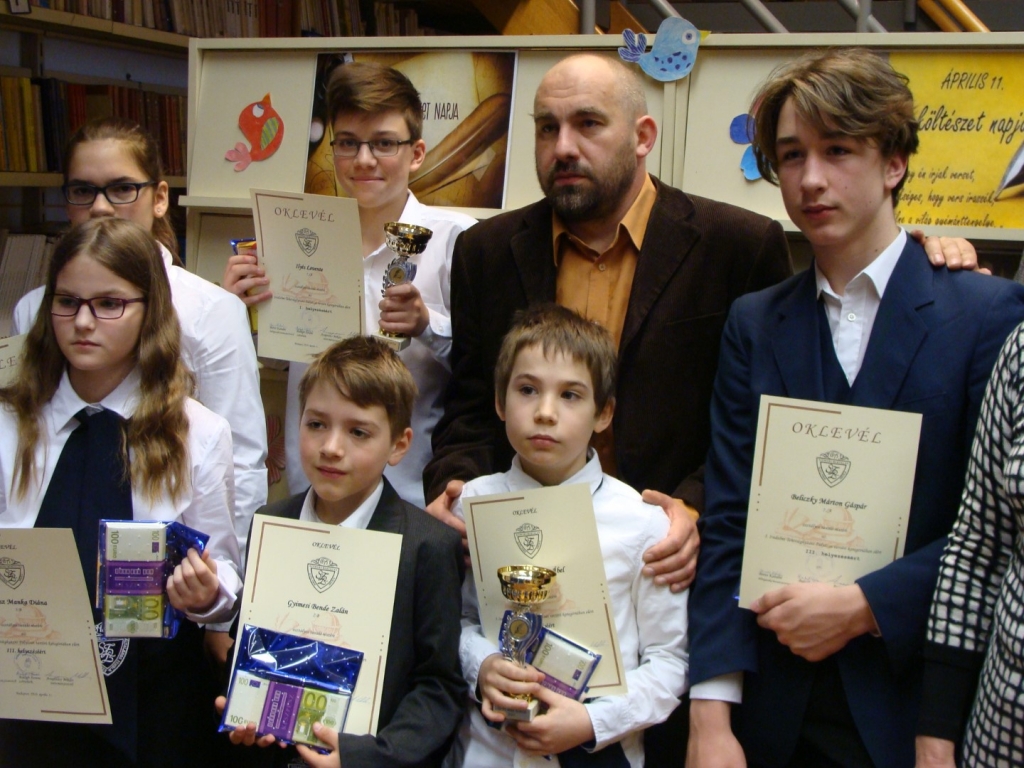 7-8. évfolyamon vers kategóriában Gönczy Lívia II., Fekete Dániel a III. helyezett lett.