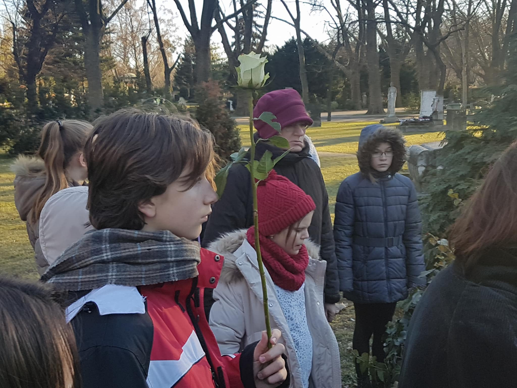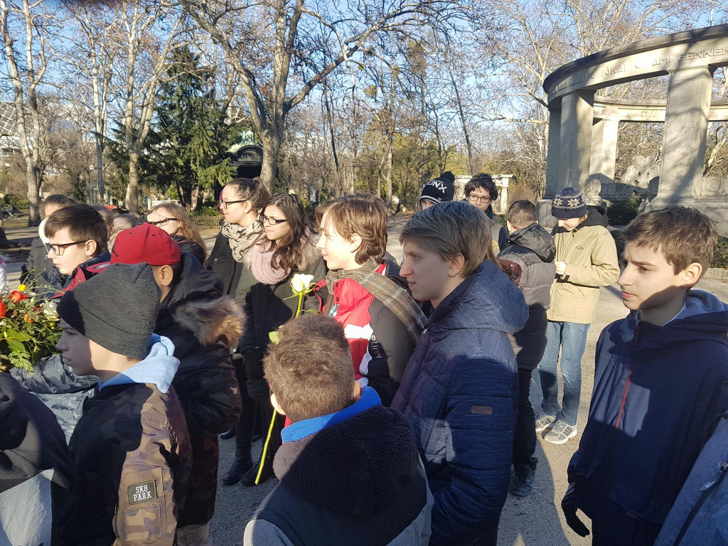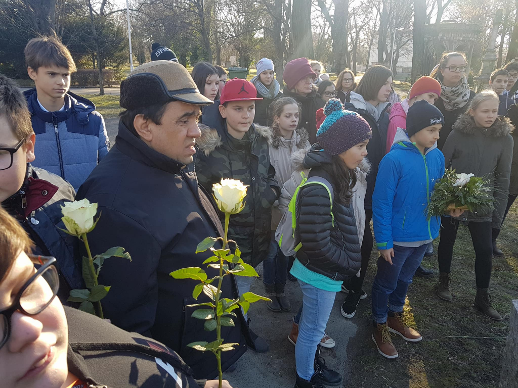 Iskolánk 6.A és 7.A osztályának tagjai vettek részt az emléksétán, melyen A 7.A 3 tanulója is verset mondott.